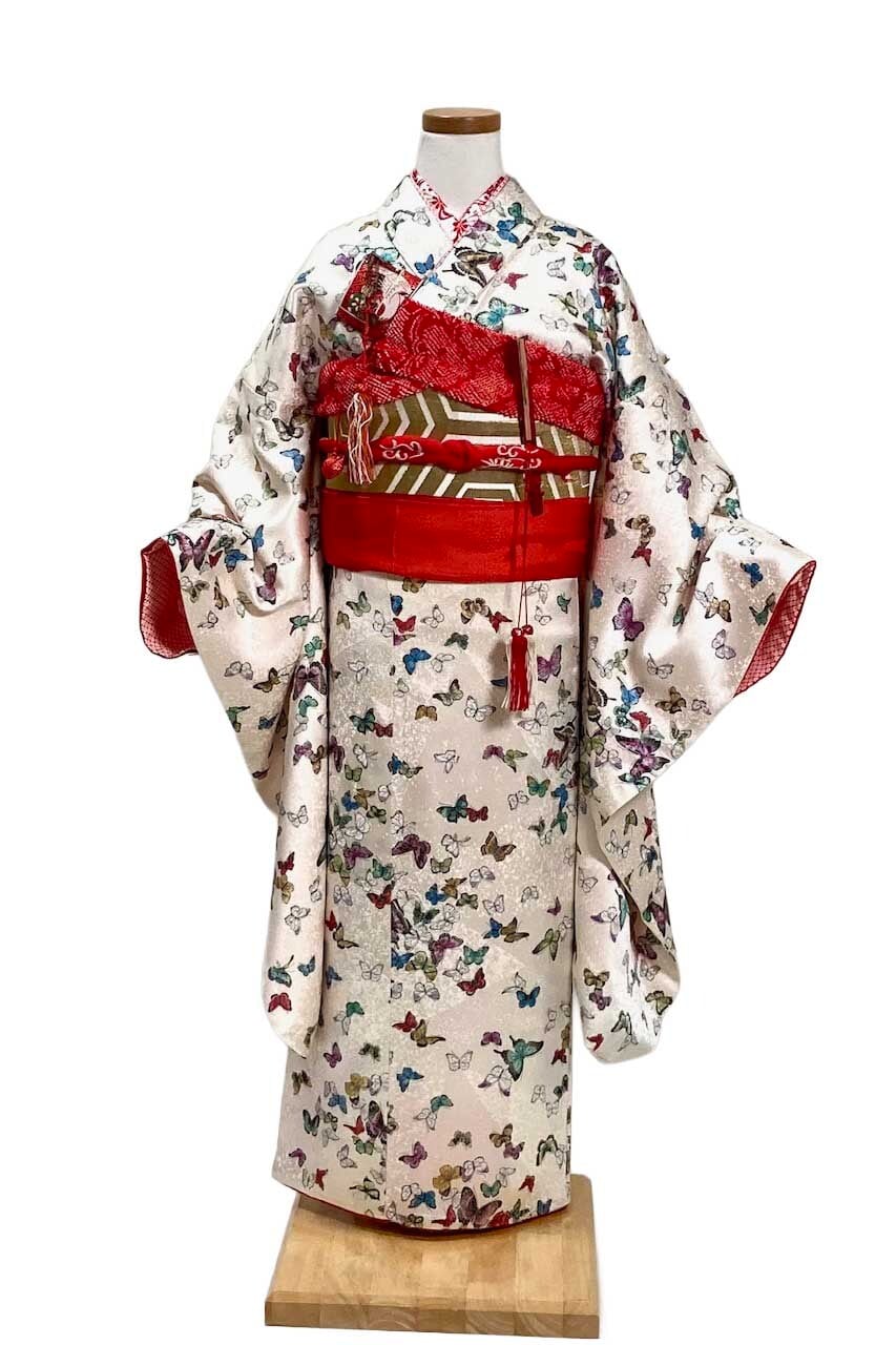 《セット内容》振袖(着物)・袋帯・帯揚げ・帯締め・帯板・帯枕・三重紐・伊達締め・腰紐・長じゅばん・筥迫セット・足袋・草履・バッグ