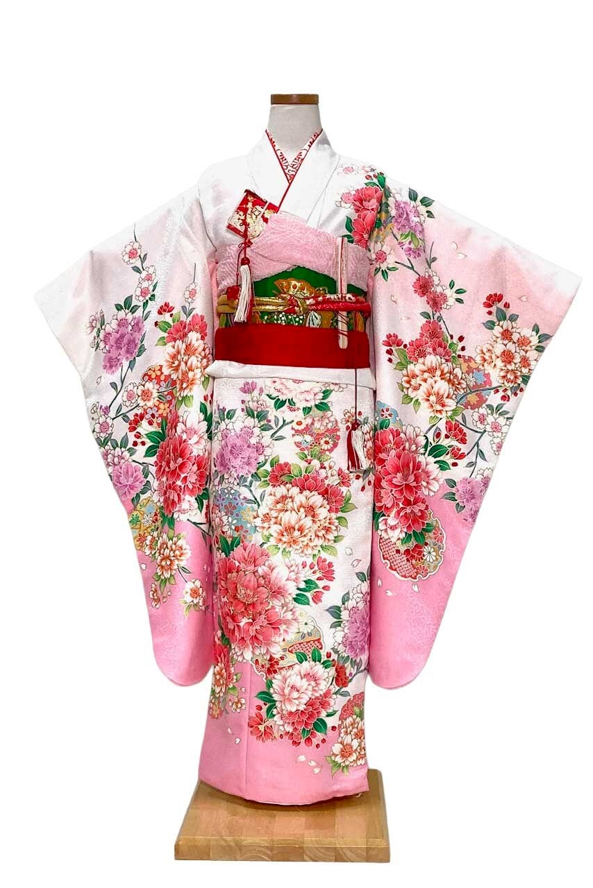 《セット内容》振袖(着物)・袋帯・帯揚げ・帯締め・帯板・帯枕・三重紐・伊達締め・腰紐・長じゅばん・筥迫セット・足袋・草履・バッグ