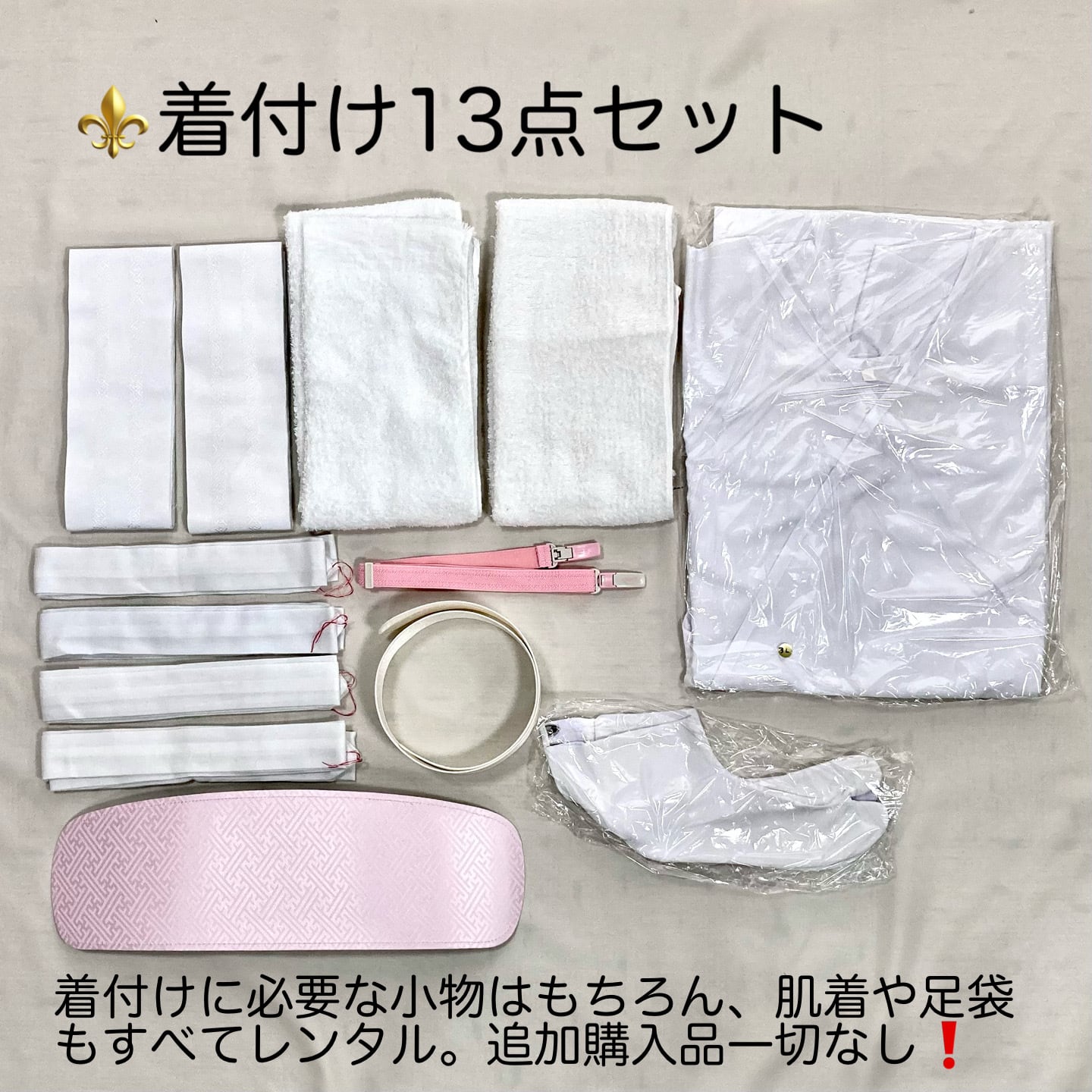 【セット内容】着物・袴・袴下帯・重ね衿・帯板・衿芯・着物ベルト・伊達締め・腰紐・補正タオル・長じゅばん・スリップ・足袋・草履・髪飾り