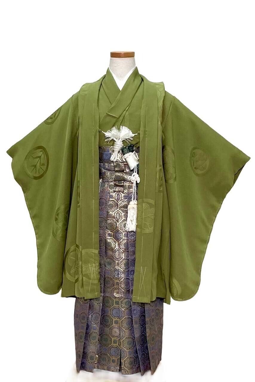 《セット内容》着物・羽織・羽織紐・帯・袴・長襦袢・肌着・腰紐・足袋・雪駄・懐剣・末広